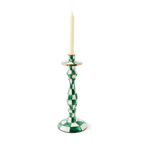 • Emerald Check Enamel & Rattan Round Serving Tray